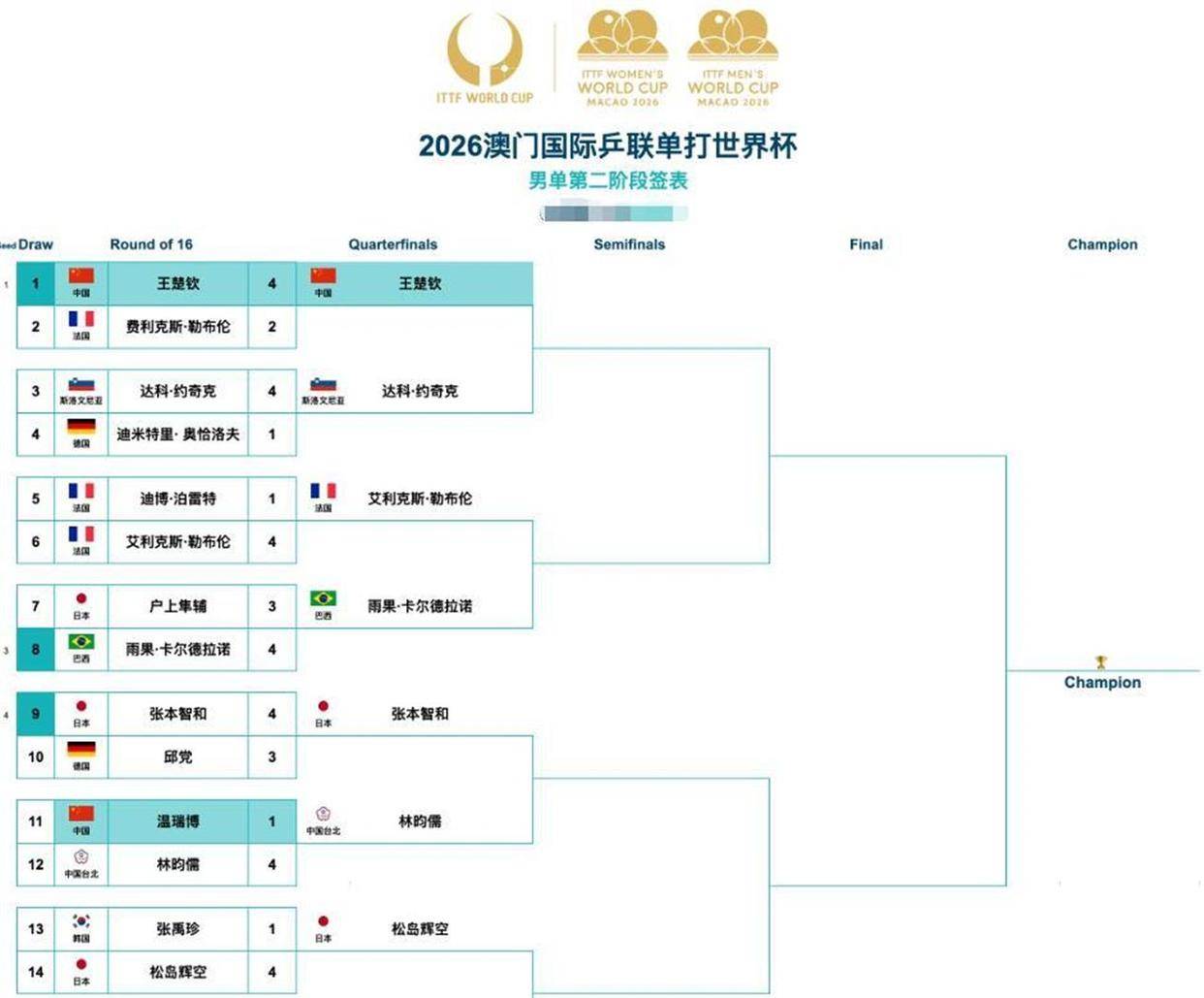 转眼来到男子单打赛场,这里的气氛则完全截然不同,显得格外凝重。中国国家乒乓球队在本届赛事的男单表现,着实令人捏一把汗。梁靖崑、周启豪等实力强劲的选手,皆已过早地止步于比赛进程之中,能够跻身八强,仅剩王楚钦一人孤军奋战。他,成为了中国男乒本次世界杯争夺冠军的唯一希望。去年世界杯的男单金牌,已经被巴西选手雨果·卡尔德拉诺收入囊中,王楚钦今年的目标,可谓是异常明确,就是要将失落的冠军奖杯,坚决地夺回来。